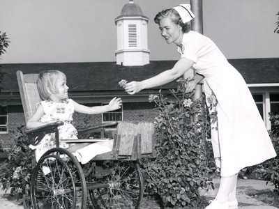 With the advent of the Salk and Sabin vaccines in the mid-1950s, the need for a strictly convalescent hospital diminished. About that same time, a new need emerged–the need for a pediatric hospital to care for seriously ill and injured children. In 1957, Elsie Mead worked tirelessly to form the Children’s Hospital Society, which was dedicated to raising funds for the construction of a children’s hospital.