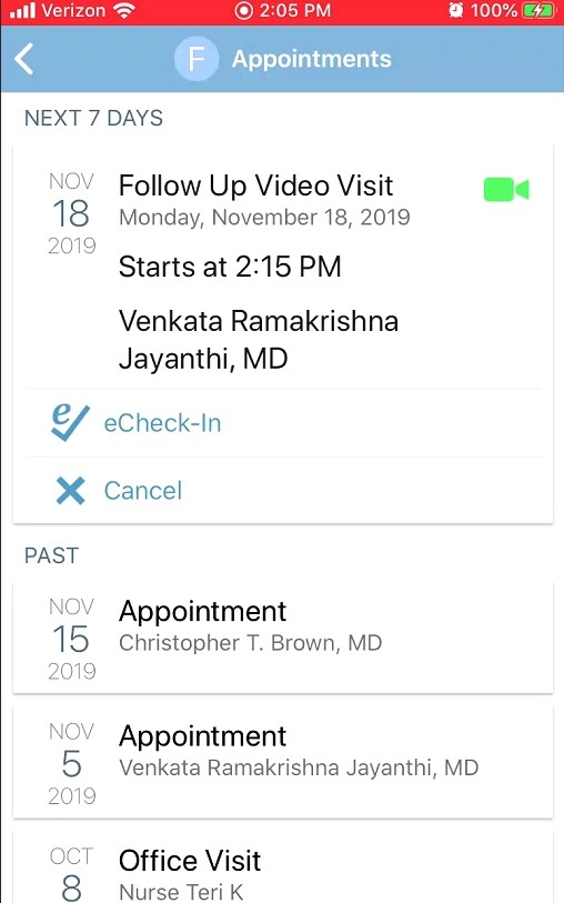 4. Choose your upcoming visit and tap\click the “eCheck-in” button.