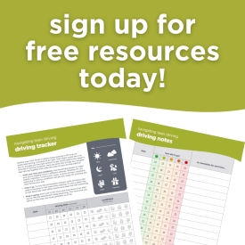 Sign up for our teen driving newsletter today and get your first free resource: a brand-new driving hours tracker! This tool helps you log the required 50 hours of practice in the most intentional way. It covers all the essentials, from nighttime driving to city streets and rural roads.
