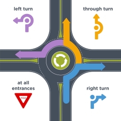 When approaching a roundabout, slow down and yield to traffic already in the circle. Look to your left to check for vehicles and enter when there’s a safe gap. Remember, pedestrians and cyclists have the right of way when crossing at designated spots. Keep things flowing by staying in your lane and watching for others! Always use your turn signal when you’re about to exit the roundabout.