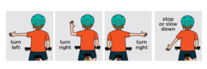 - Be predictable by making sure you ride in a straight line and don’t swerve between cars.