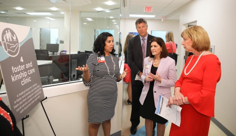 Leslie Howard shares information on the foster and kinship care clinic with Ohio’s First Lady Fran DeWine, Deborah Feldman and Nick Lashutka, president of the Ohio Children’s Hospital Association (OCHA).