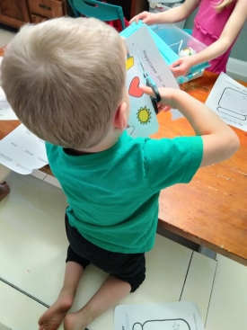 Encourage your children (if they are old enough to use scissors) to cut the grid into individual squares.
