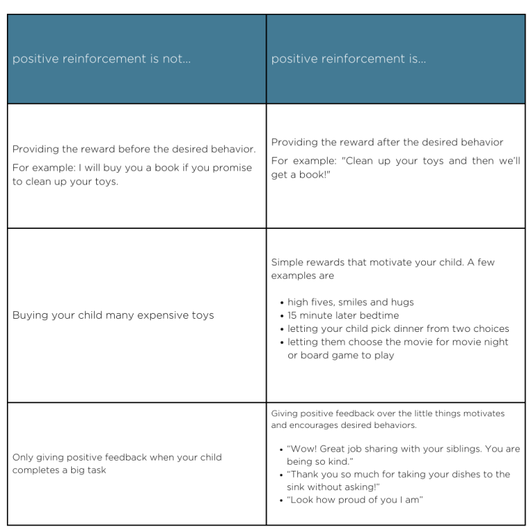 Reinforcing positive behaviors is not the same as bribing. Reinforcing positive behaviors can include providing praise, high fives, and attention to the behaviors you would like to encourage in your child.