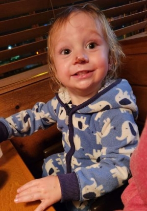 Abra and Rick Reed are no strangers to Dayton Children’s. Parents of four boys, they had their fair share of visits. One ordinary day, their youngest, 2-year-old Abram, was riding his tricycle when he rode into some freshly cut bushes. Abram backed out of the bush and went to Abra, who noticed one of the sharp branches had gone right through his nose. They went straight to the emergency department at Dayton Children’s main campus.