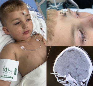 Brayson now has a scar along his hairline from one ear, across his forehead to the other ear. He also has four titanium plates and 16 screws holding his skull in place.