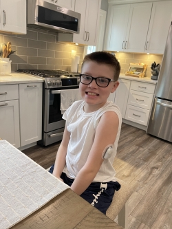 In February, Mason started using the Omnipod® 5 pump and Dexcom G6 to manage his blood sugar and automatically dose insulin throughout the day. Both the Omnipod 5 pump and Dexcom G6 are connected to apps, which allows Sarah and Phillip to see Mason’s levels at any time and have peace of mind knowing that he is okay.