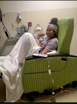 Earlier this year, Sydnee experienced one of her most severe pain crises so far. She was hospitalized for two weeks and was in such pain that she could not do things like brush her hair or walk to the restroom. Shenelle was right by Sydnee’s side, working with Sydnee’s care team to try to make her as comfortable as possible, knowing her daughter was struggling.