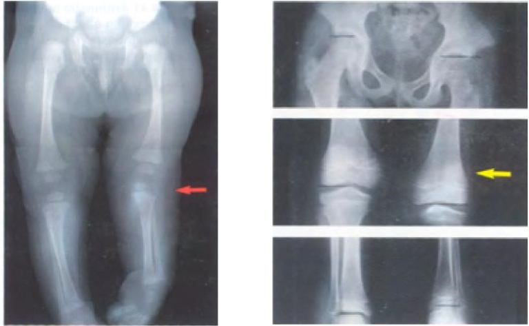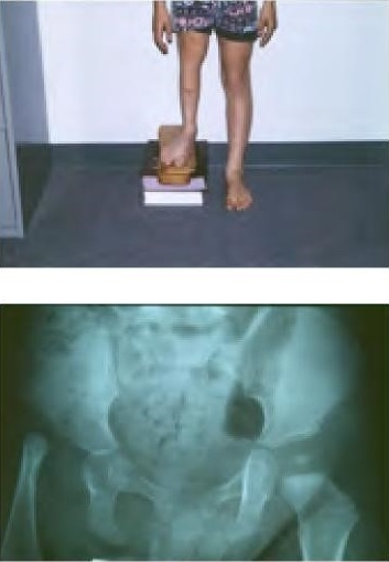 Examples of direct change in length are develop­mentally dislocated hips causing relative shortening of the lower extremity and fractures causing limb length inequality. Growth inhibition can be caused by numerous congenital diagnoses such as proximal femoral focal deficiency (PFFD) (Figure 1), fibular hemimelia, congenital short femur, posterior medial bowing, clubfoot or hemiatrophy. Other causes of growth inhibition include physeal injury from trauma, infection or irradi­ation as well as paralysis and tumors.