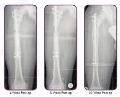 She has regained full motion and function from her intramedullary limb lengthening having lengthened her right leg a total of 11.0 cm. We used a combination of two limb lengthening tech­niques, using an external fixation done on her tibia thus avoiding her growth plates. Magnetic intra-medullary lengthening can only be used in children over 10 years as the width and length of the rods are limiting factors.