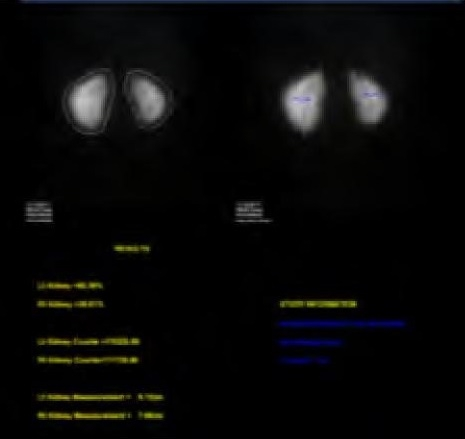 - Dimercaptosuccinic Acid (DMSA) Renal Scan (Figure 2) This is a nuclear medicine test, and should not be used routinely after a first febrile UTI, but may be helpful in identifying renal scarring later on. This test will show both renal scarring and active pyelonephritis, but cannot differentiate between the two entities. When evaluating for renal scarring, DMSA scan should not be obtained until four to six months from the time of acute pyelonephritis.8