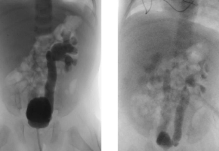 - Voiding Cystourethrogram (VCUG) (Figures 1 and 3) A VCUG is helpful in identifying bladder emptying, vesicoureteral reflux (VUR) or urethral obstruction. It should not be obtained until after a child is afebrile for at least 24 hours and is no longer symptomatic. It should be obtained in children less than 2 months with a febrile UTI, in the setting of abnormal anatomy on RBUS (hydronephrosis, renal scarring, etc.), or in other atypical or complex situations. It should be obtained in children 2 to 24 months following a second febrile UTI.6, 7