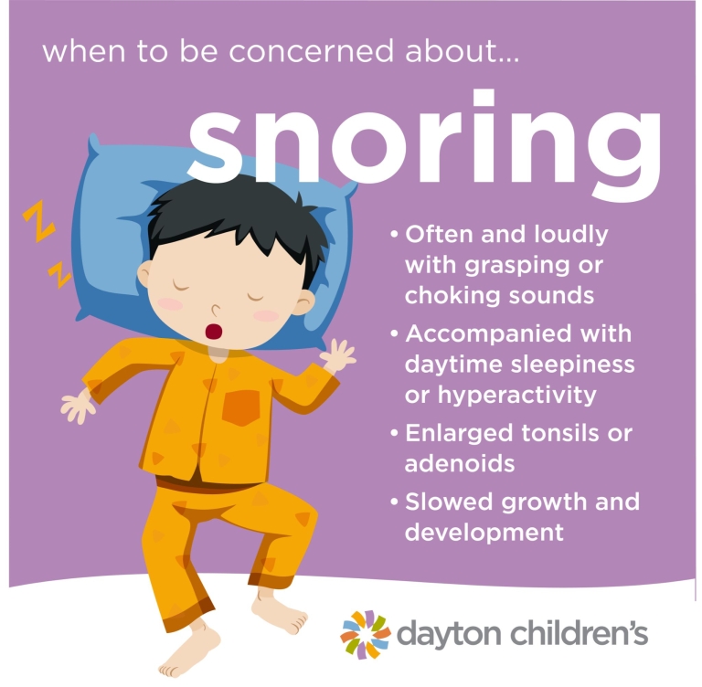 - How often and how severe: if your child is snoring often and loudly and it’s happening with gasping or choking sounds, it could be a sign of obstructive sleep apnea.