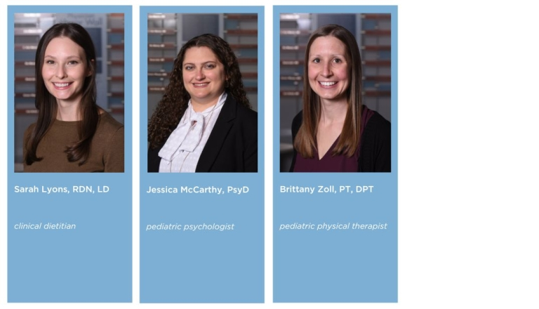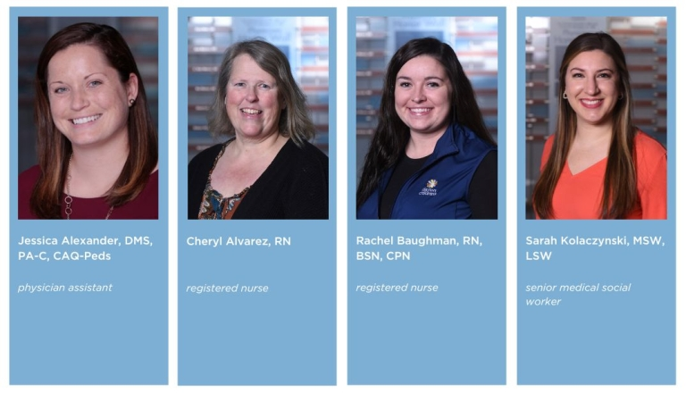 Your child will be seen by a physician assistant (medical provider), psychologist, social worker, dietitian, physical therapist and a nurse.
