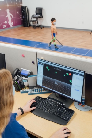 The Gait Lab uses high-tech cameras and sensors to analyze how people move. Children are often referred to the Gait Lab if they have orthopedic/musculoskeletal conditions that impact their gait and functional mobility. Information from the lab can help with surgical planning, brace/spasticity management, and other recommended treatments.