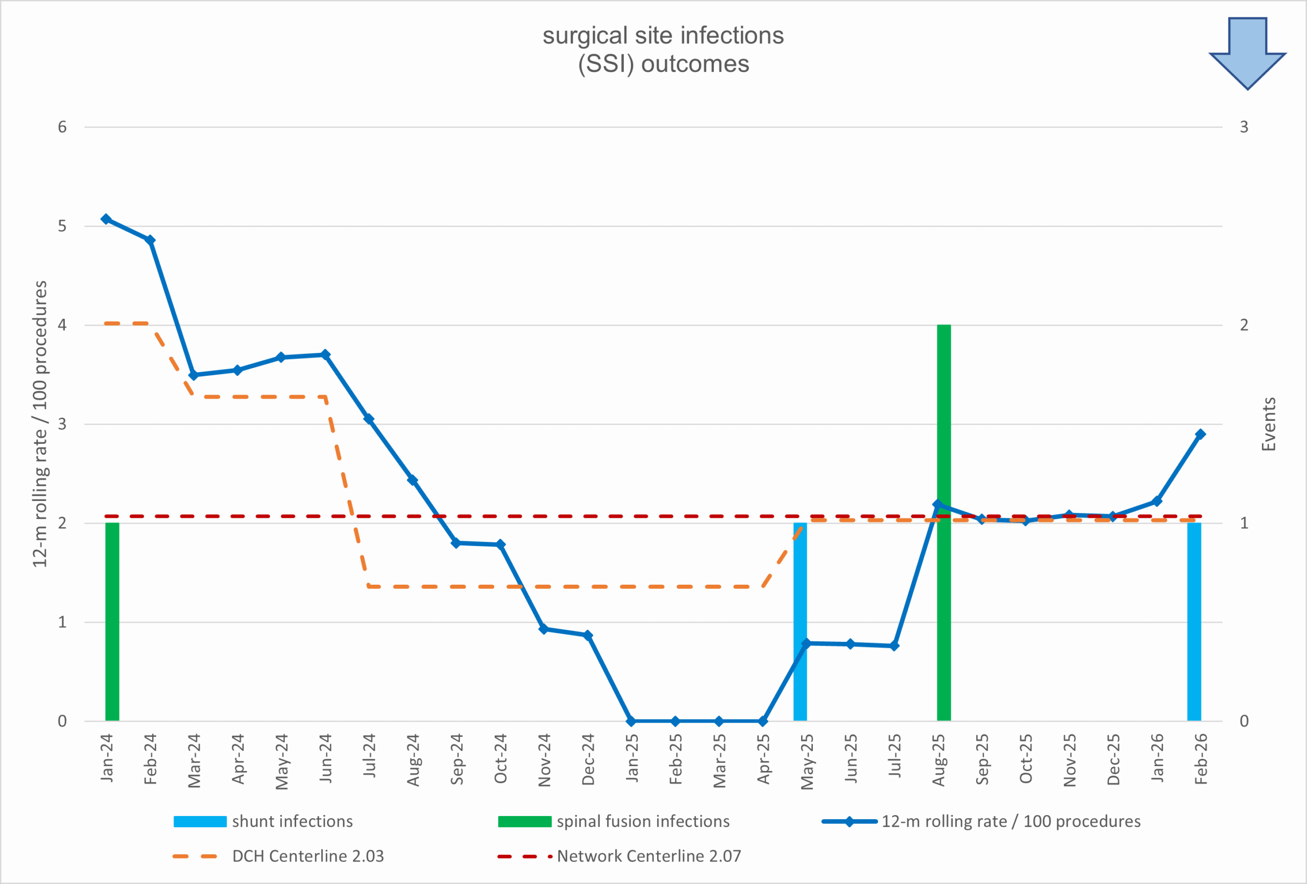 - At present we measure the number of infections related to spine cases and to specific neurosurgery cases.